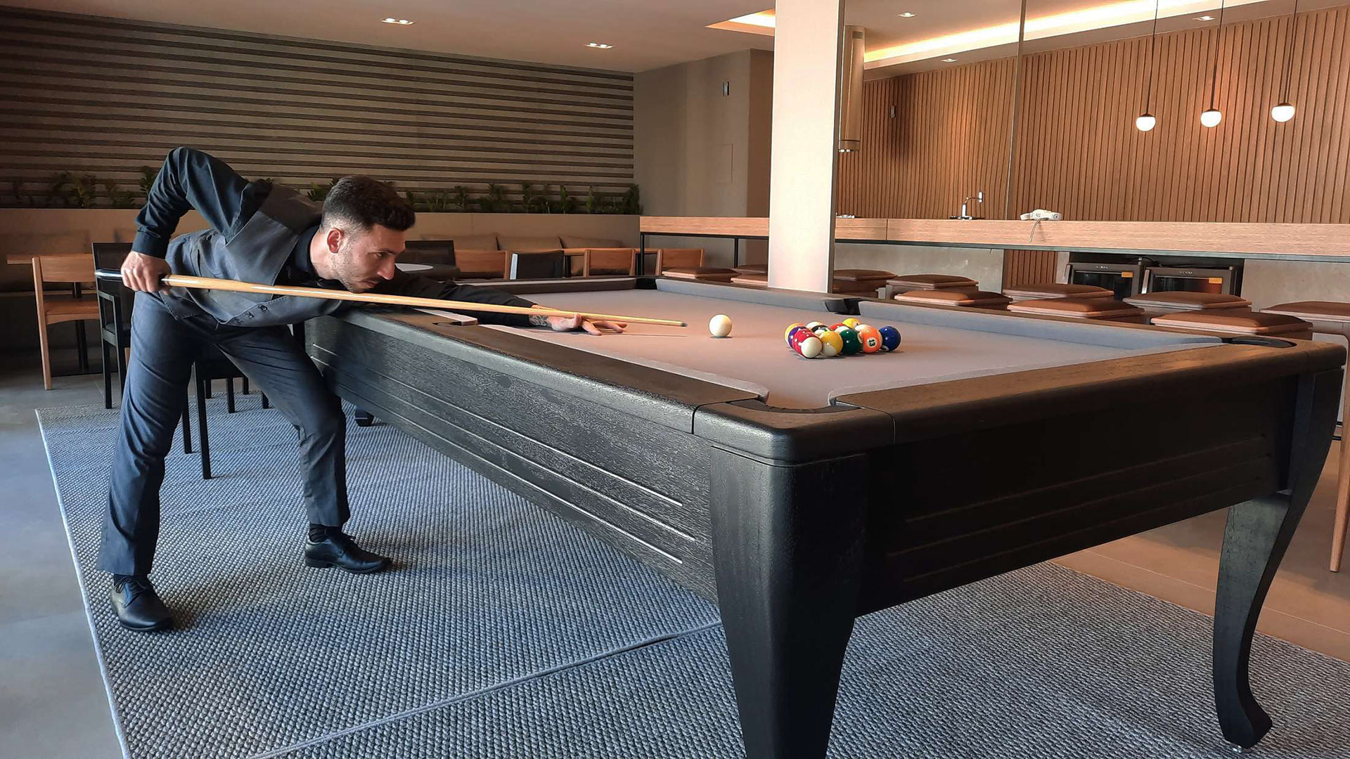 Ao adquirir uma mesa de Snooker Sarkis, você garante um pacote de aulas e técnicas para desenvolver o seu jogo, através de uma apresentação ministrada diretamente pelo assinante da marca, o atleta: