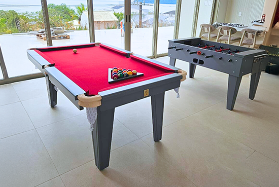 A Sarkis Basic preserva o design clássico das mesas de sinuca somado a um acabamento requintado. Compacta, traz equilíbrio entre o tradicional e o moderno para diversos tipos de ambientes.