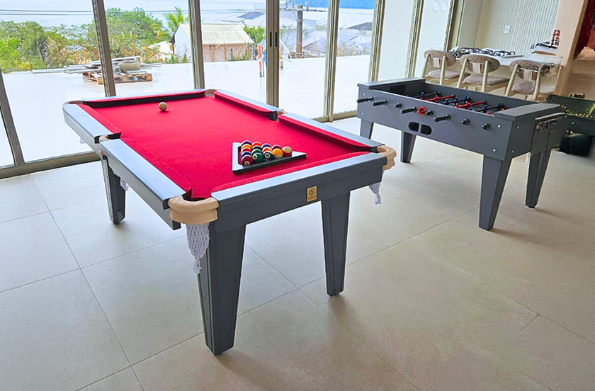 A Sarkis Basic preserva o design clássico das mesas de sinuca somado a um acabamento requintado. Compacta, traz equilíbrio entre o tradicional e o moderno para diversos tipos de ambientes.